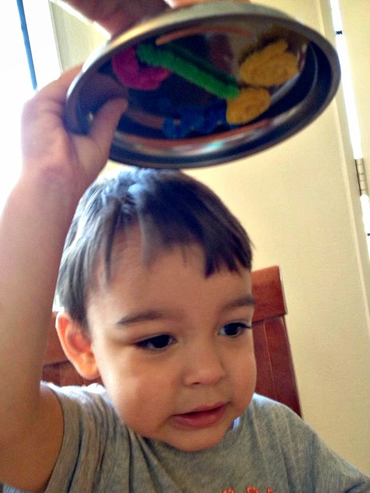 Unfortunately my poor son has been sick with bronchiolitis (it has been rough!) But we had a few minutes to take out this activity and I am happy to say he calmly enjoyed investigating and experimenting with it. He put all the pipe cleaners on the bowl and turned it upside down, when to his amazement, all the pipe cleaners stayed on the bowl! I loved watching his face light up when he made that discovery :) As for pictures, I only shot one because I was sitting close cuddling my sick little man as much as he would let me.